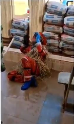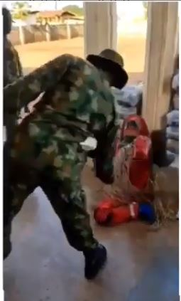 A masquerade was seen shouting and crying as he gets flogged by a soldier. Gistvic Reports.
