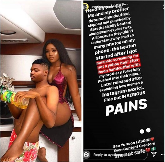 Popular Nigerian photoshop user on Instagram, AyoTheCreator beaten up by SARS officials for having too many ‘strange pictures’ in his phone, Along Benin Expressway.