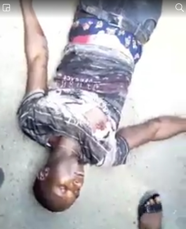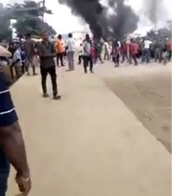 New Park,Owerri road,Onitsha.According to an eyewitness who narrated the story,policemen stormed the park to arrest weed smokers.The deceased joined people at the park to run when policemen stormed the park.It was during the process that one of the policemen shot him dead.Angry mob blocked the roads and set tyres ablaze.