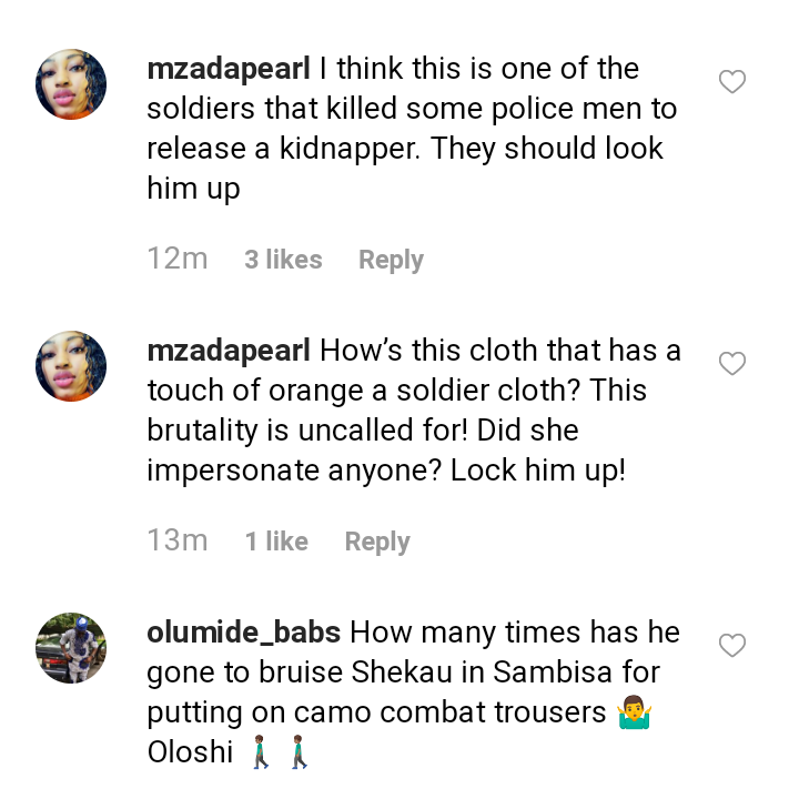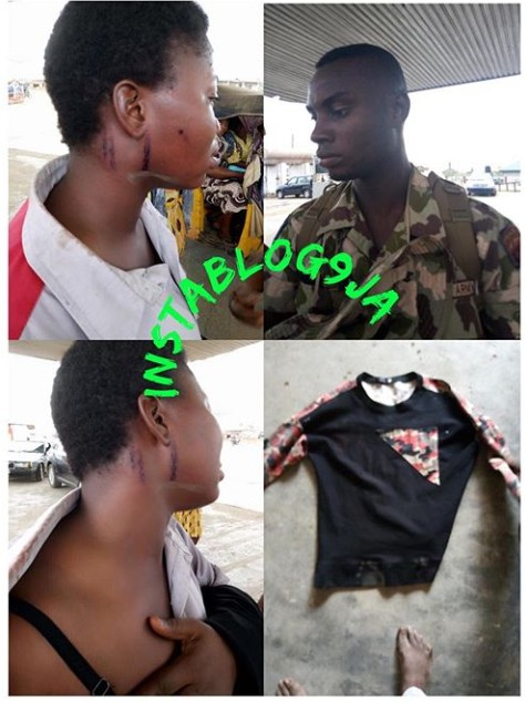 The incident happened, today, in Sango Otta, Ogun State. The lady works at Nipco filling station and the soldier was there to buy fuel, when he spotted and assaulted her.